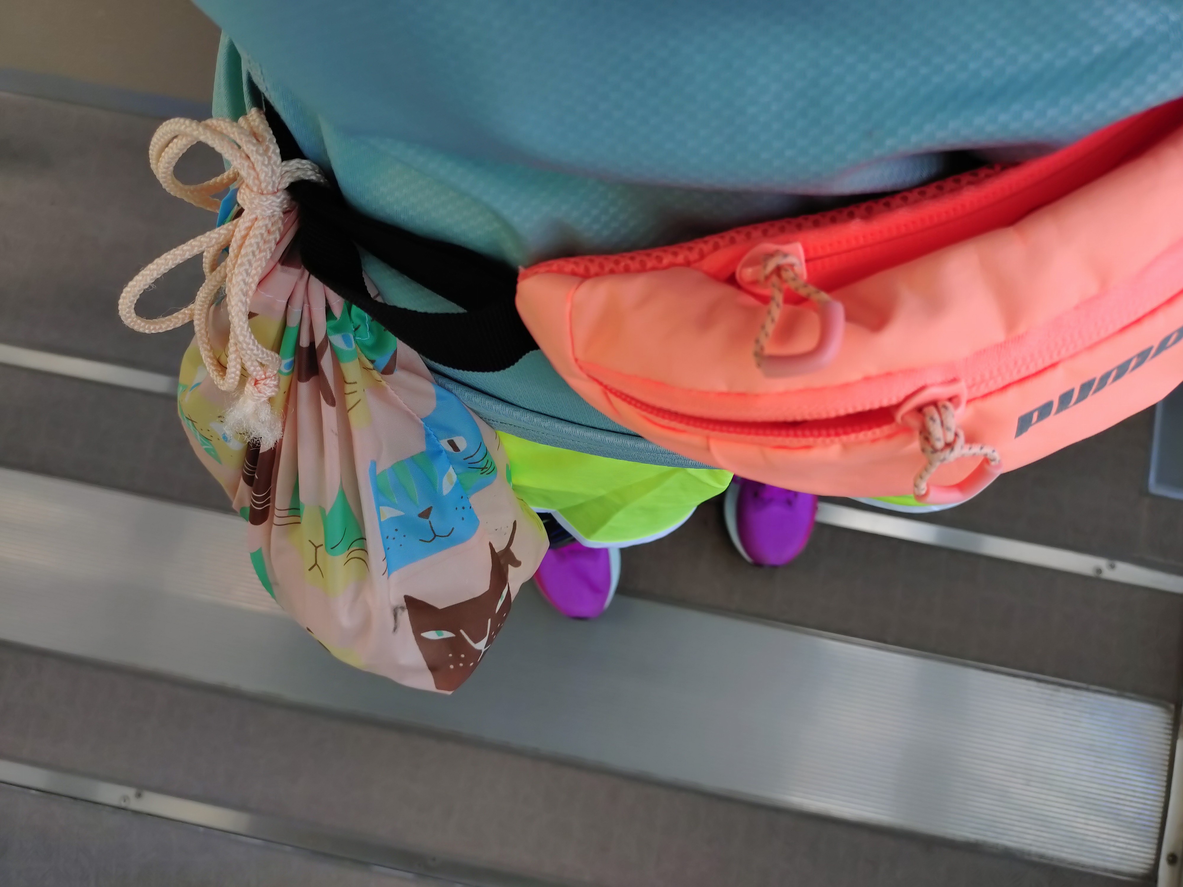 ウエストポーチに猫のご飯をぶら下げて走ってるねん。行きにお皿に入れてカリカリをやって・・
