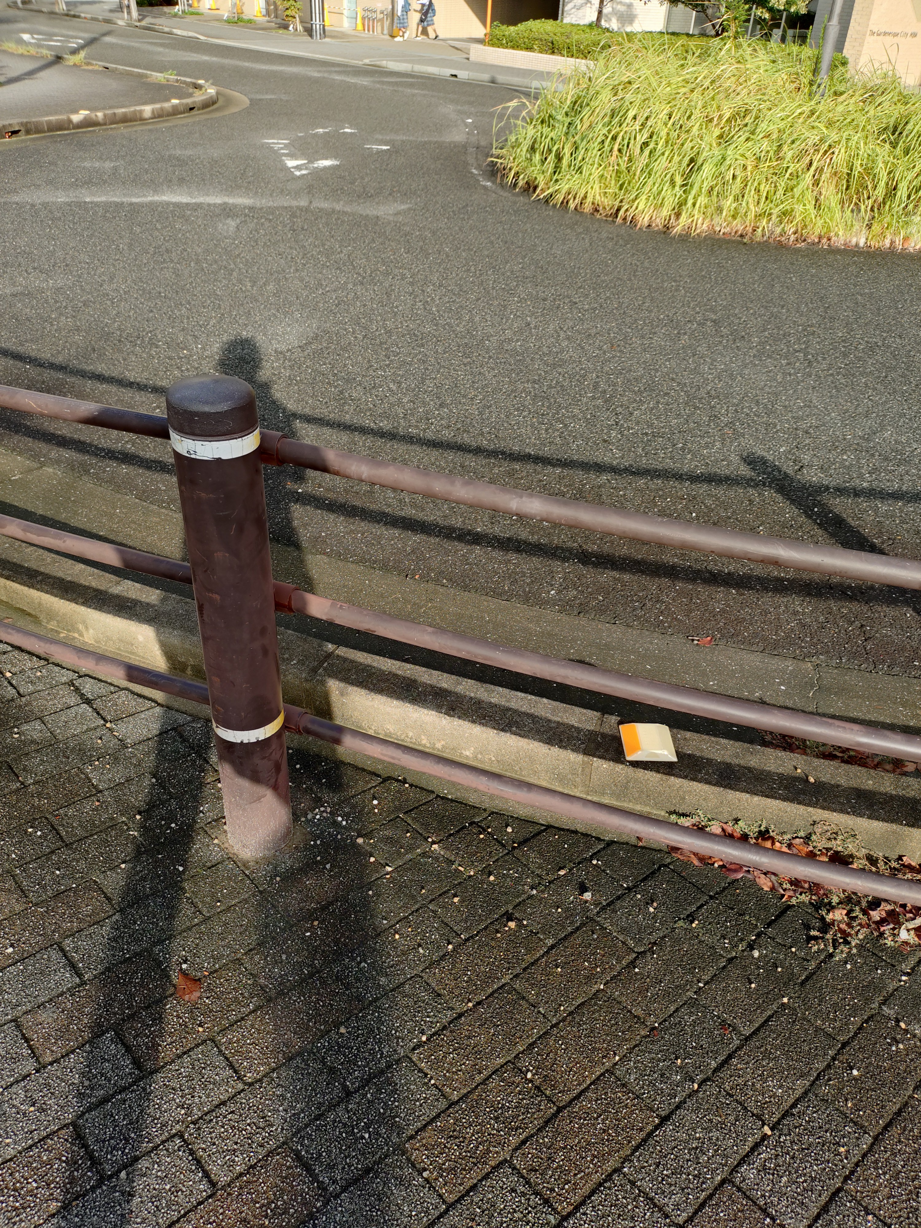 走り終えたら、、マンションの前のガードレールでハムストリングの筋膜リリースをしてるねん。
