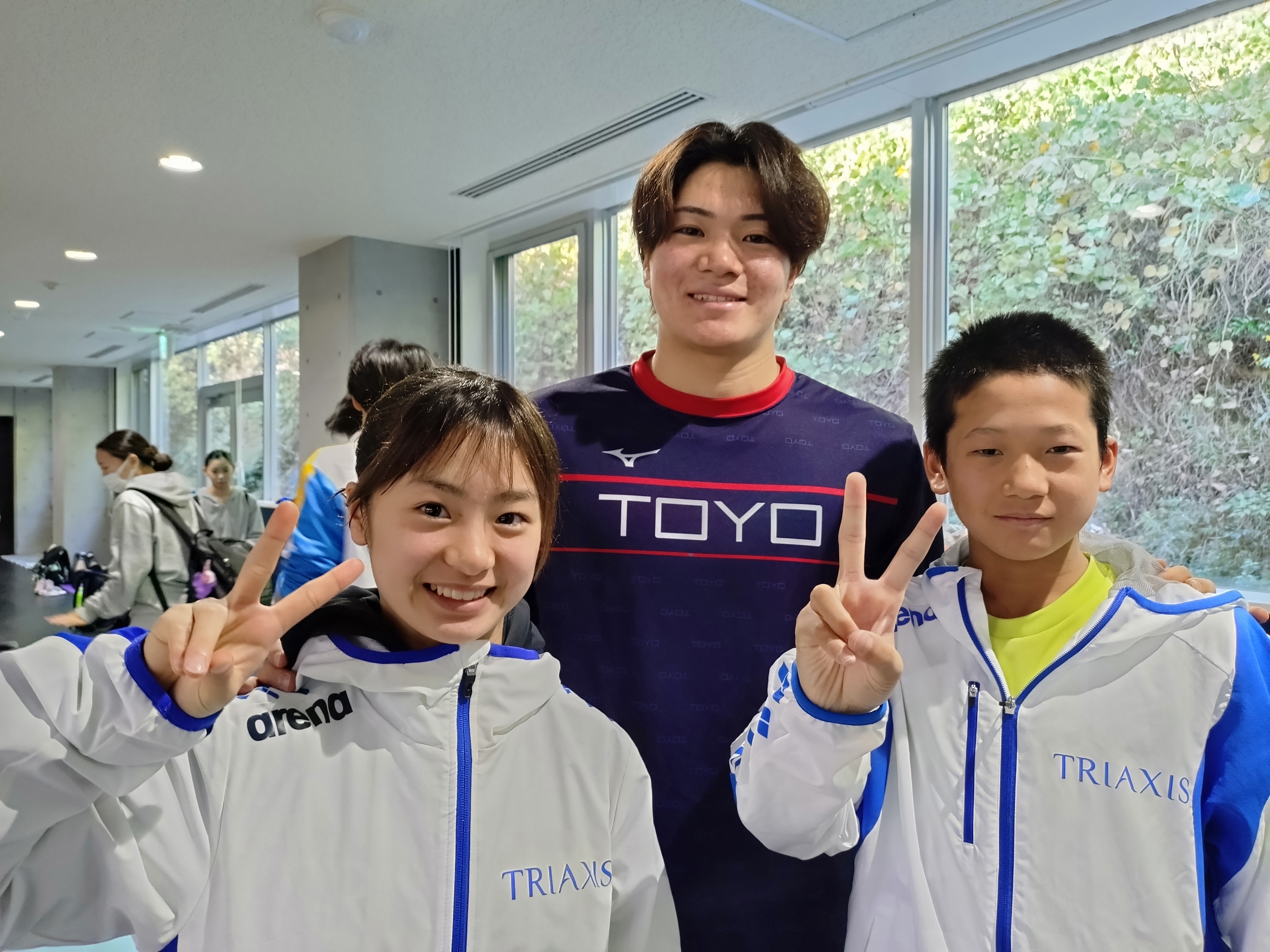 今回、生で初めて「松下選手」を見た。泳ぎもさることながら・・・子供たちの写真やサインにも・・