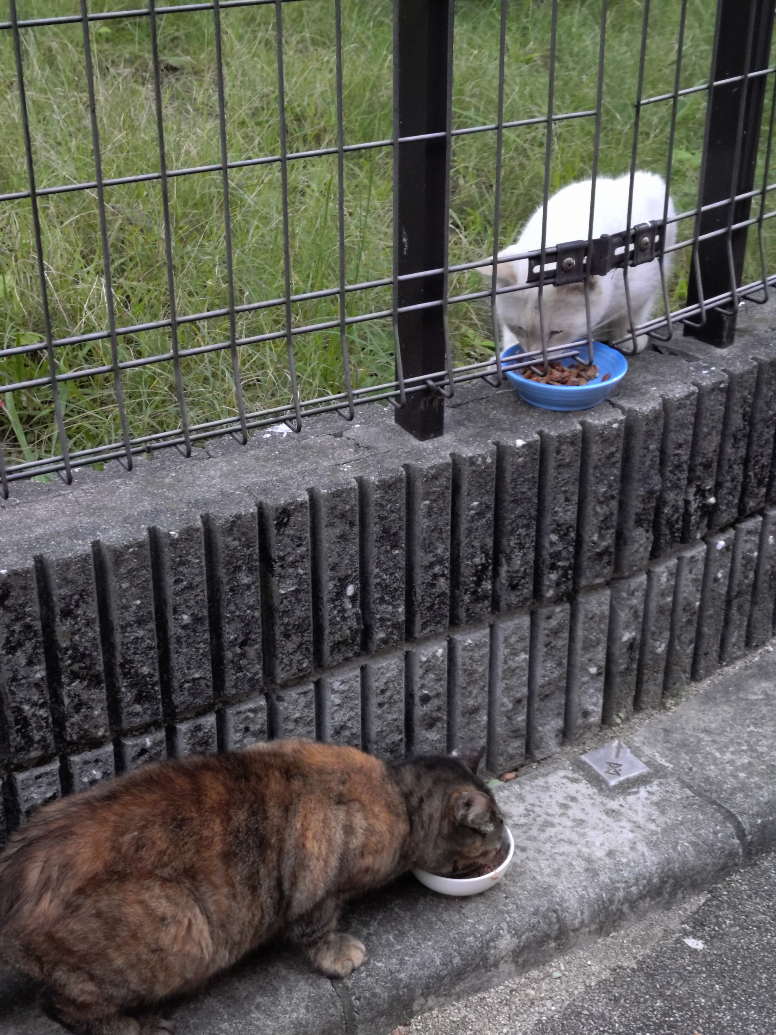 今、エーコが毎日元気に頑張る「源」になってるのが猫の朝ご飯やり・・かな。