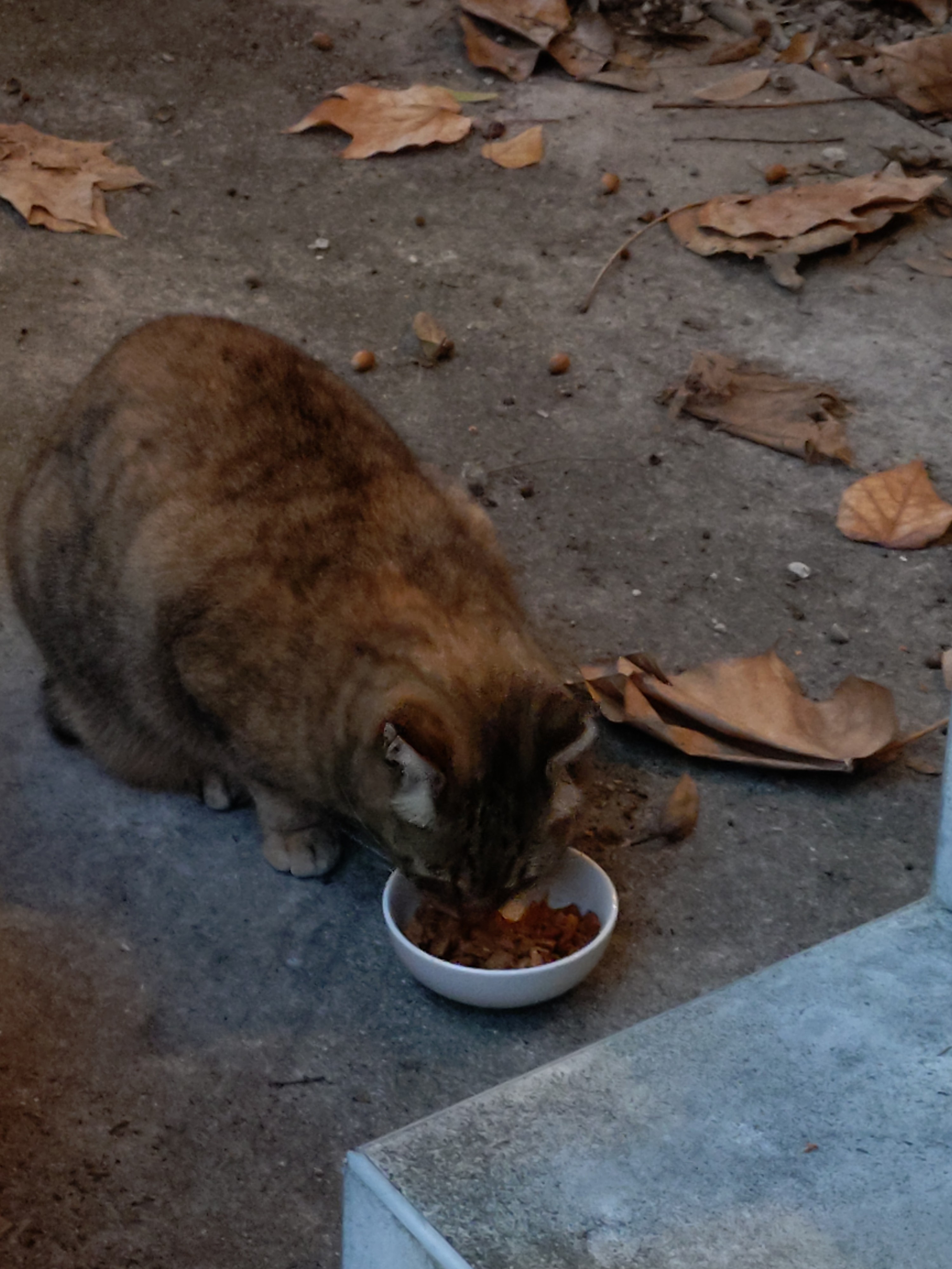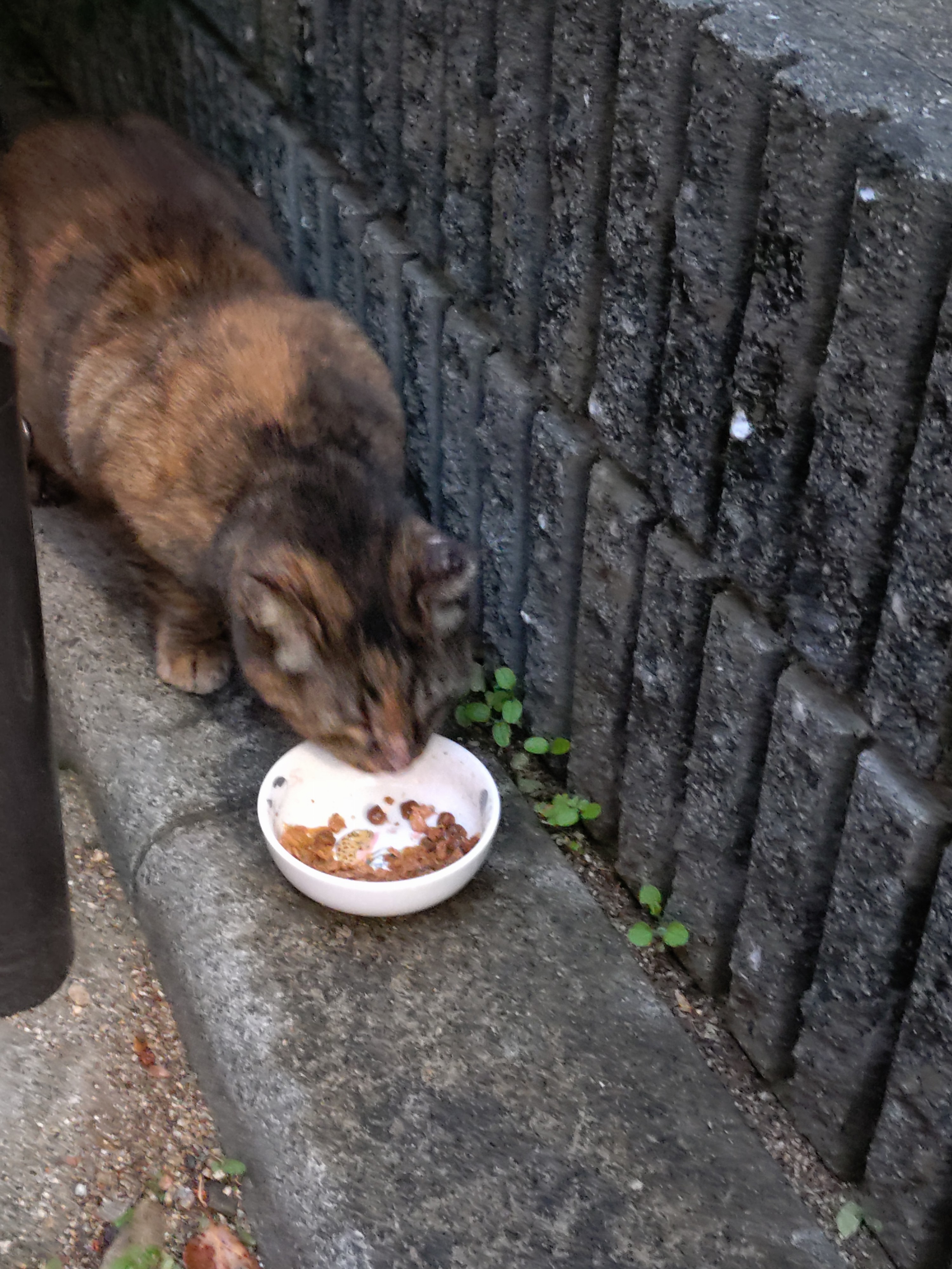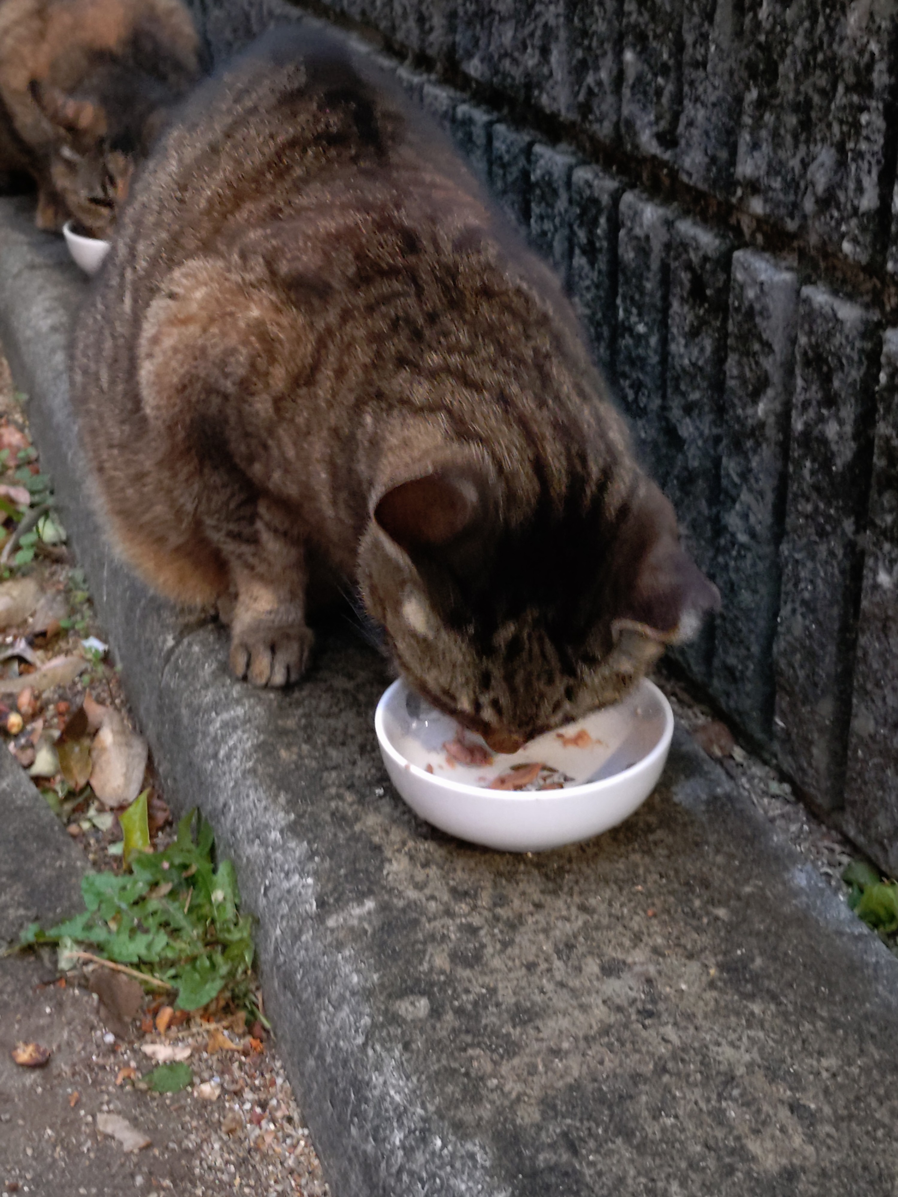 今日は猫の朝ご飯は5匹とも全員が元気に出て来てた。やはり、1匹でも顔を見ないと気になるんや😢