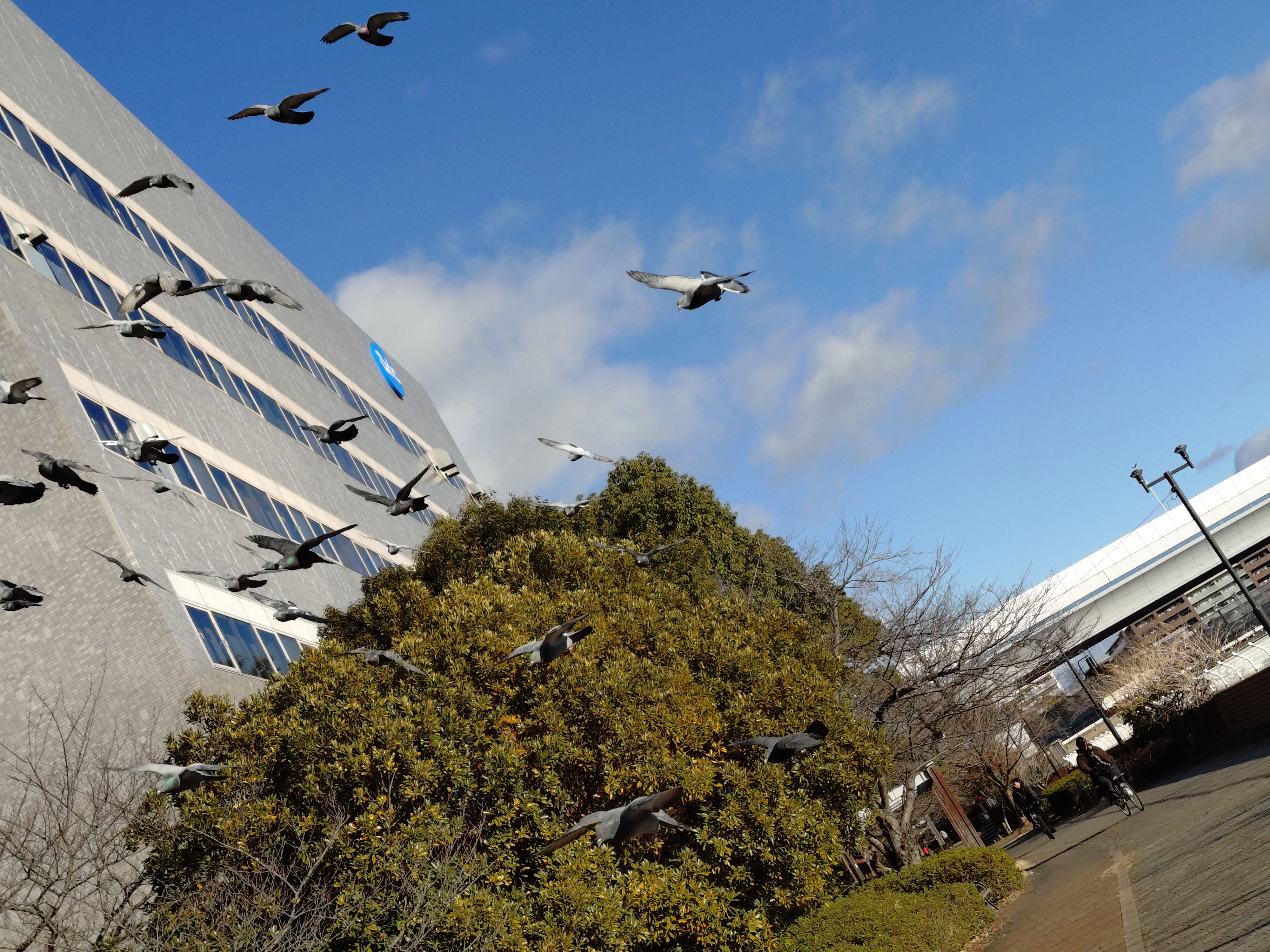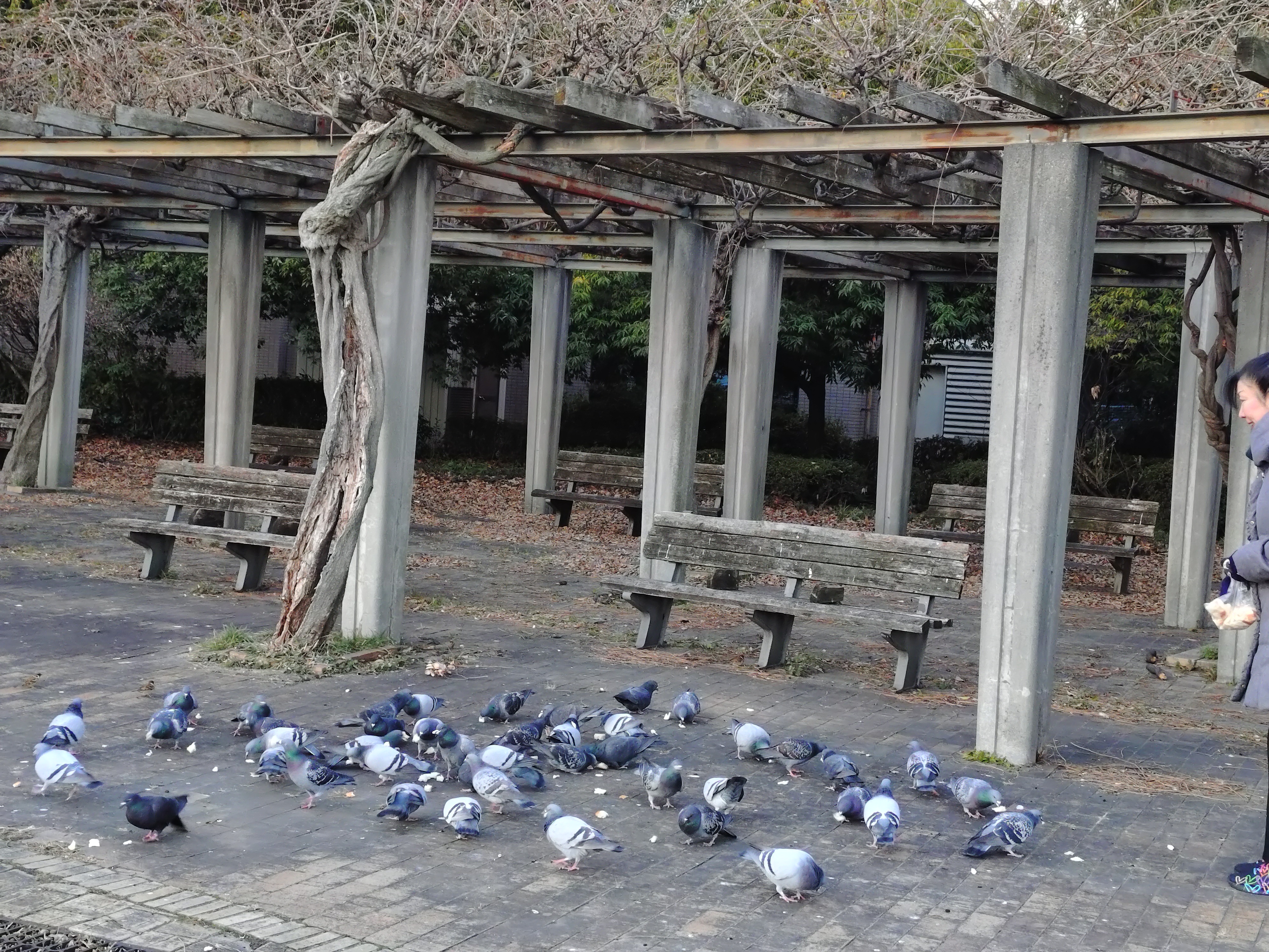 この女性が自転車でやってくると・・・ハトが集合して来るんやで~~~(@_@;)