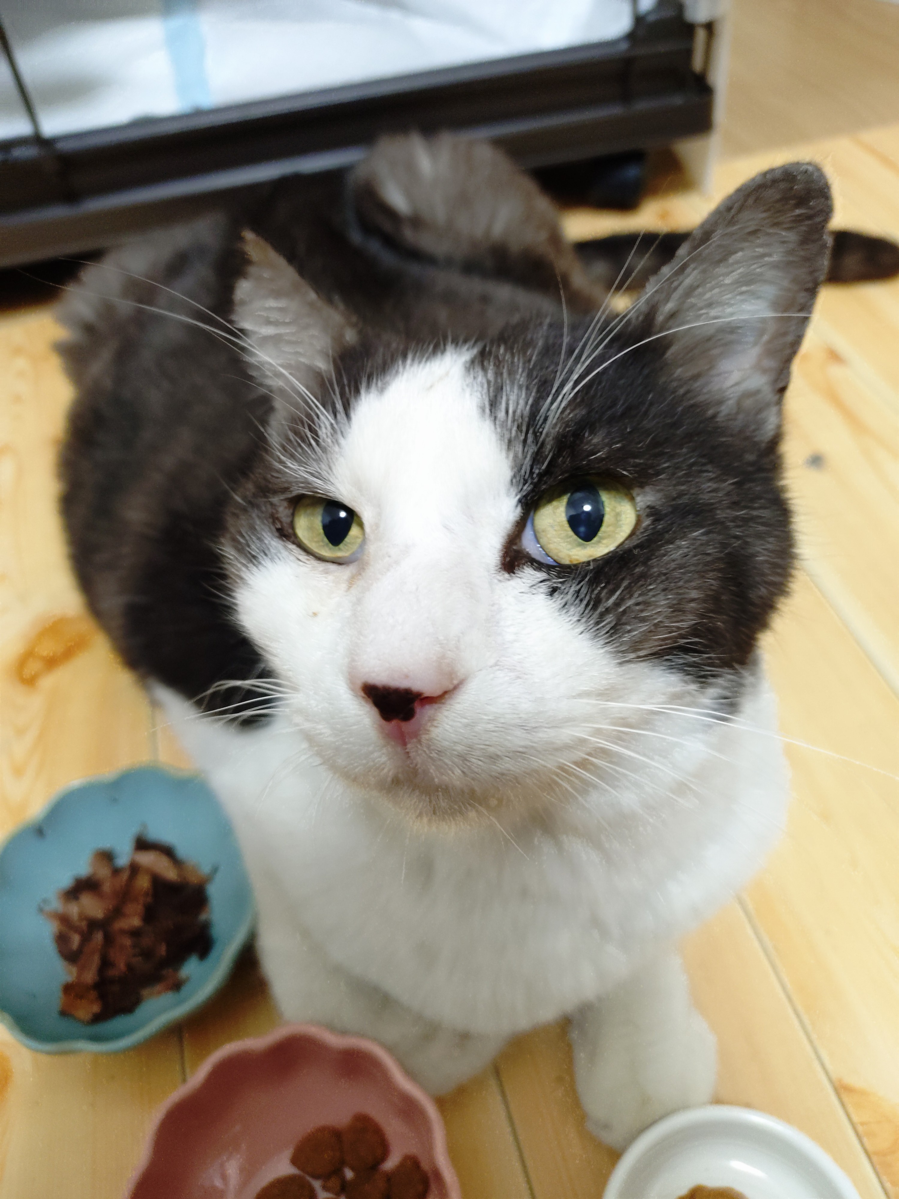 急いで会いに行って来た。ゲージの中からエーコがチュールを持ったら