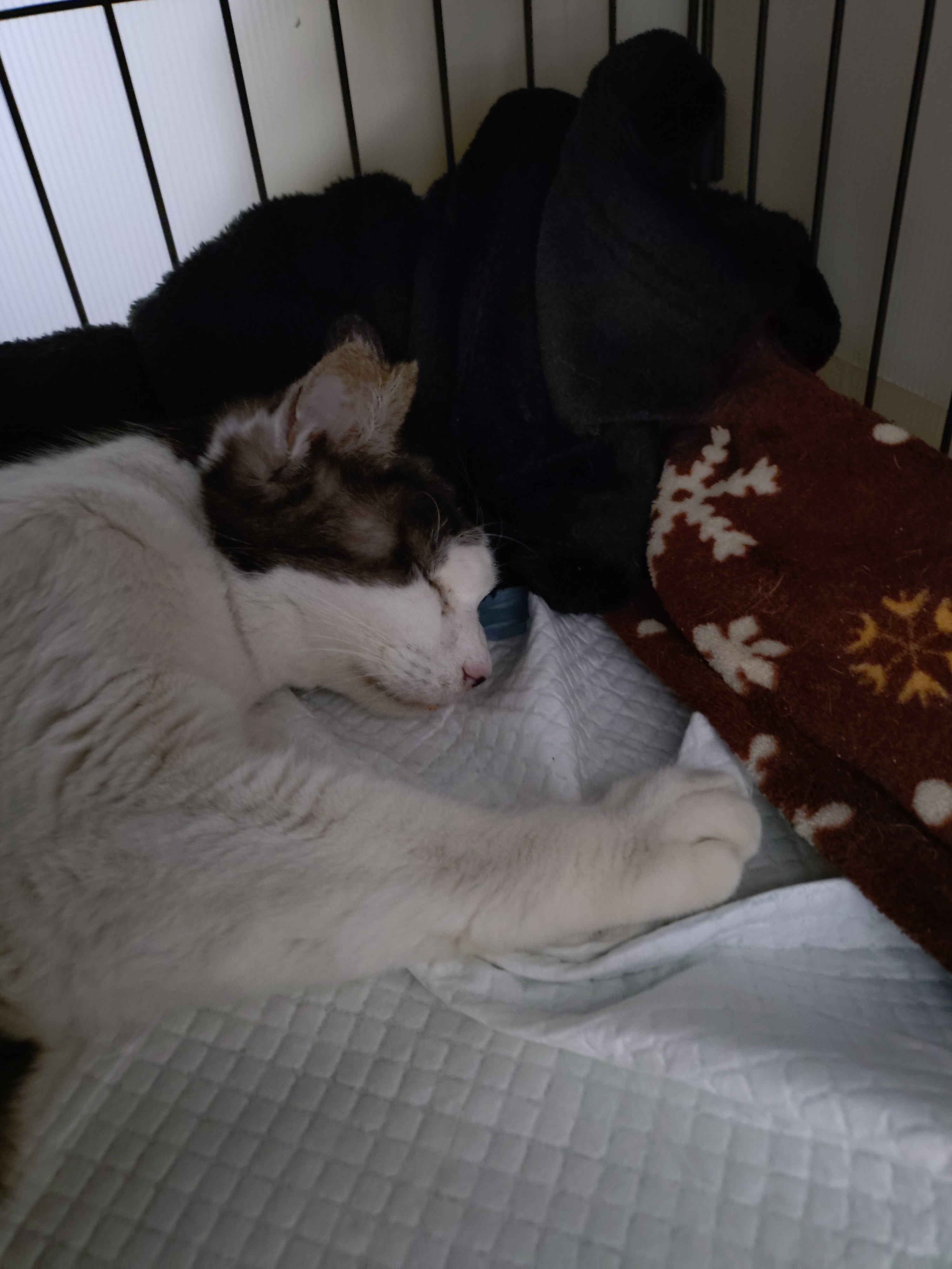 自分でゲージに戻ったら、、もう・・しんどそうに横たわってた😢