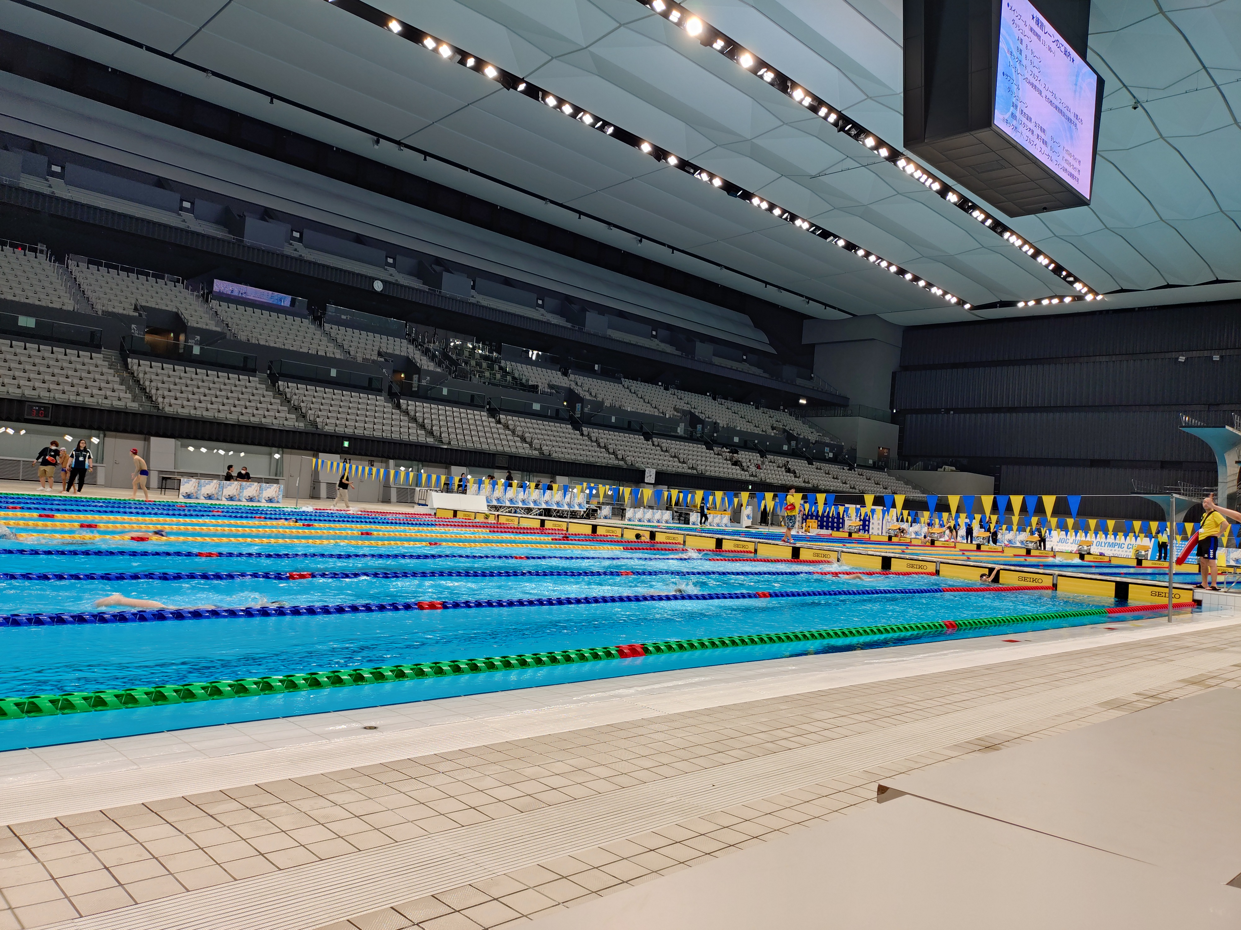 アクアテックセンターが初めてで、プールサイドにも降りた!!と感激はしてたけどやはり大変やったと思う。