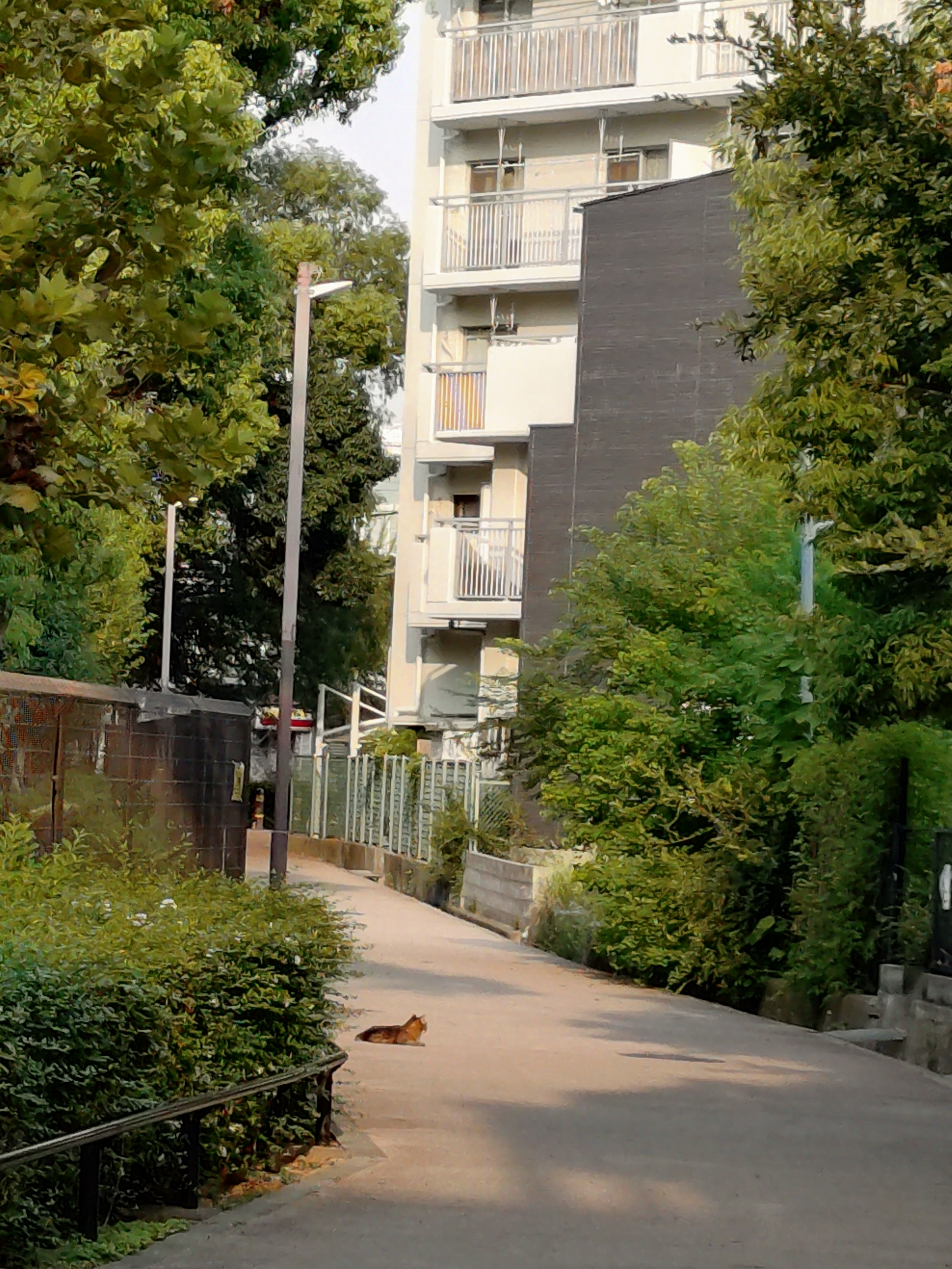 朝、うーちゃんはお家の前ではなく、階段の下にいた