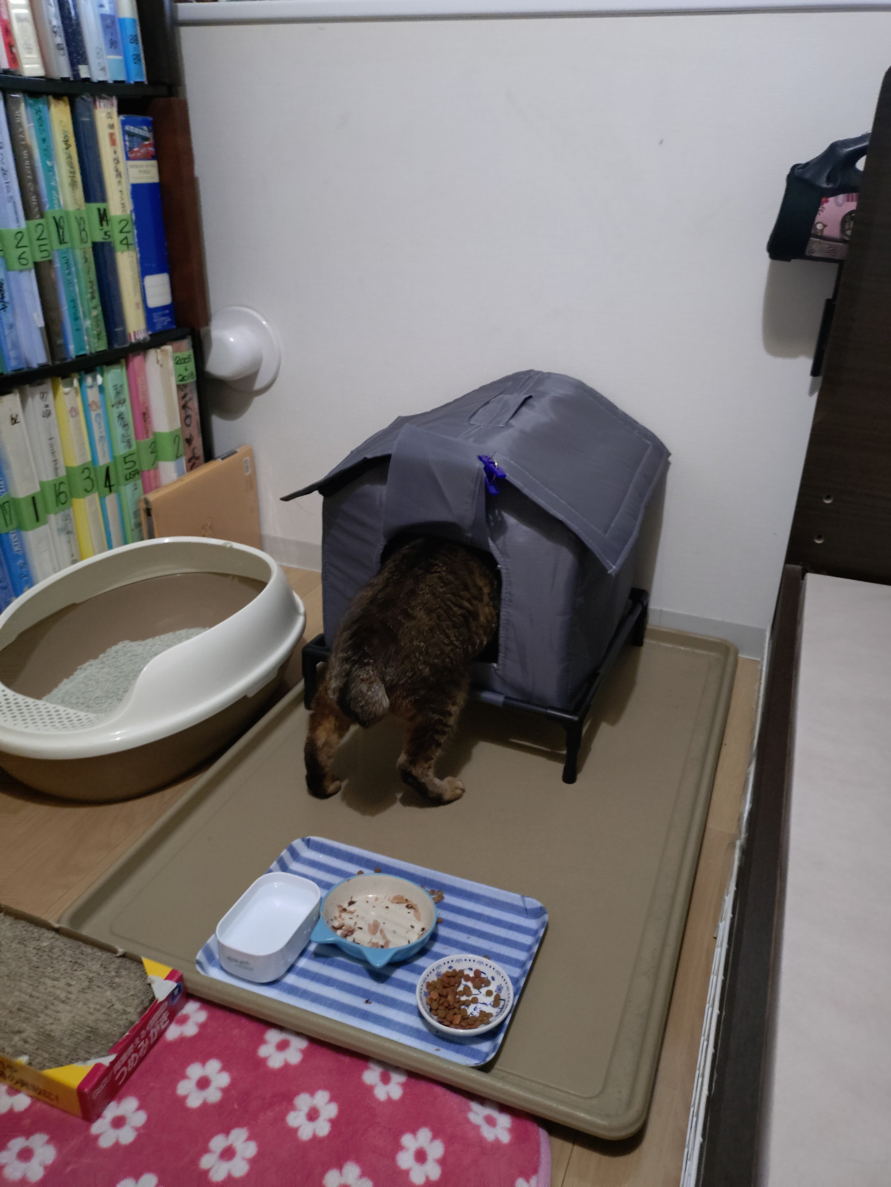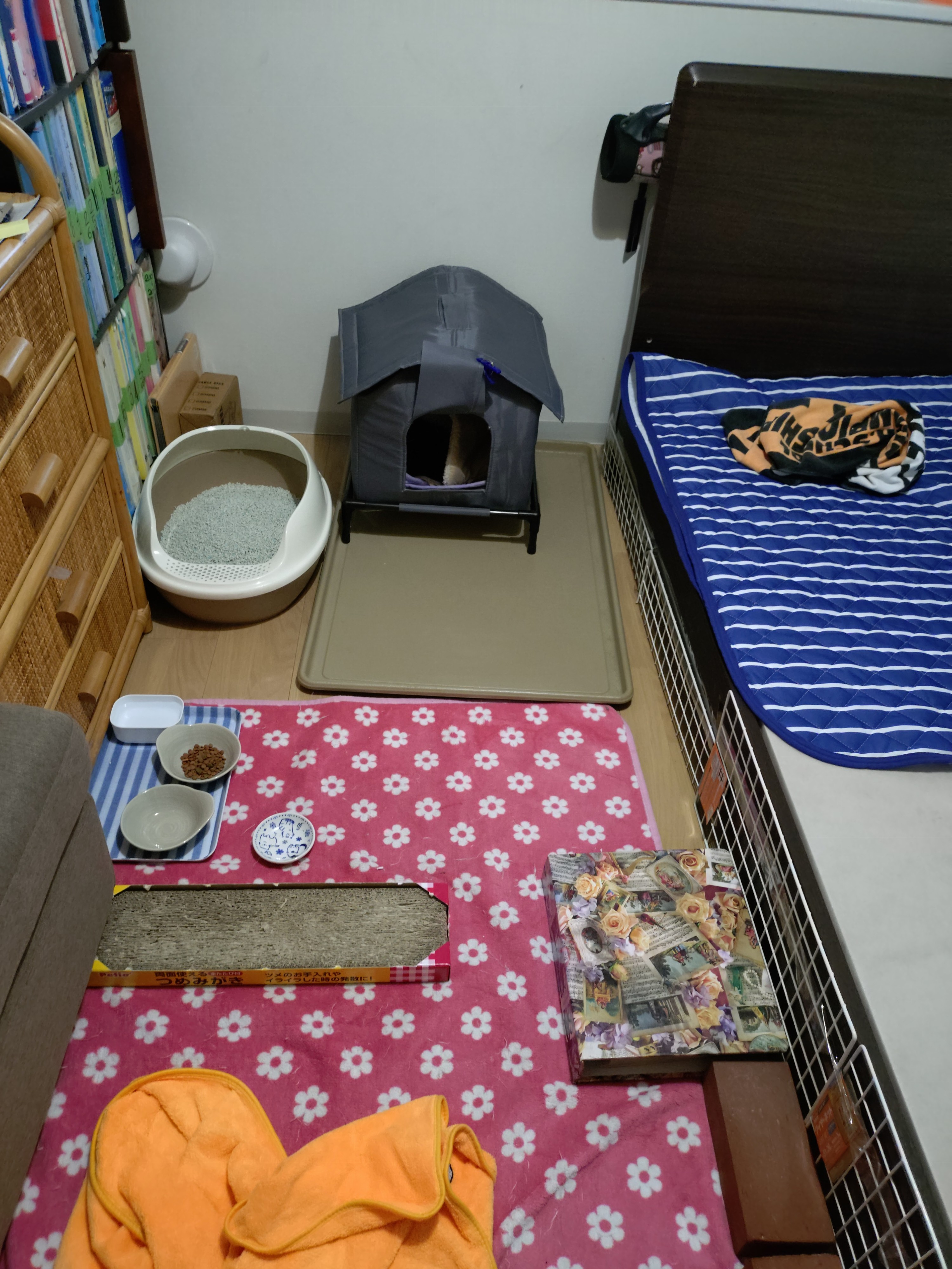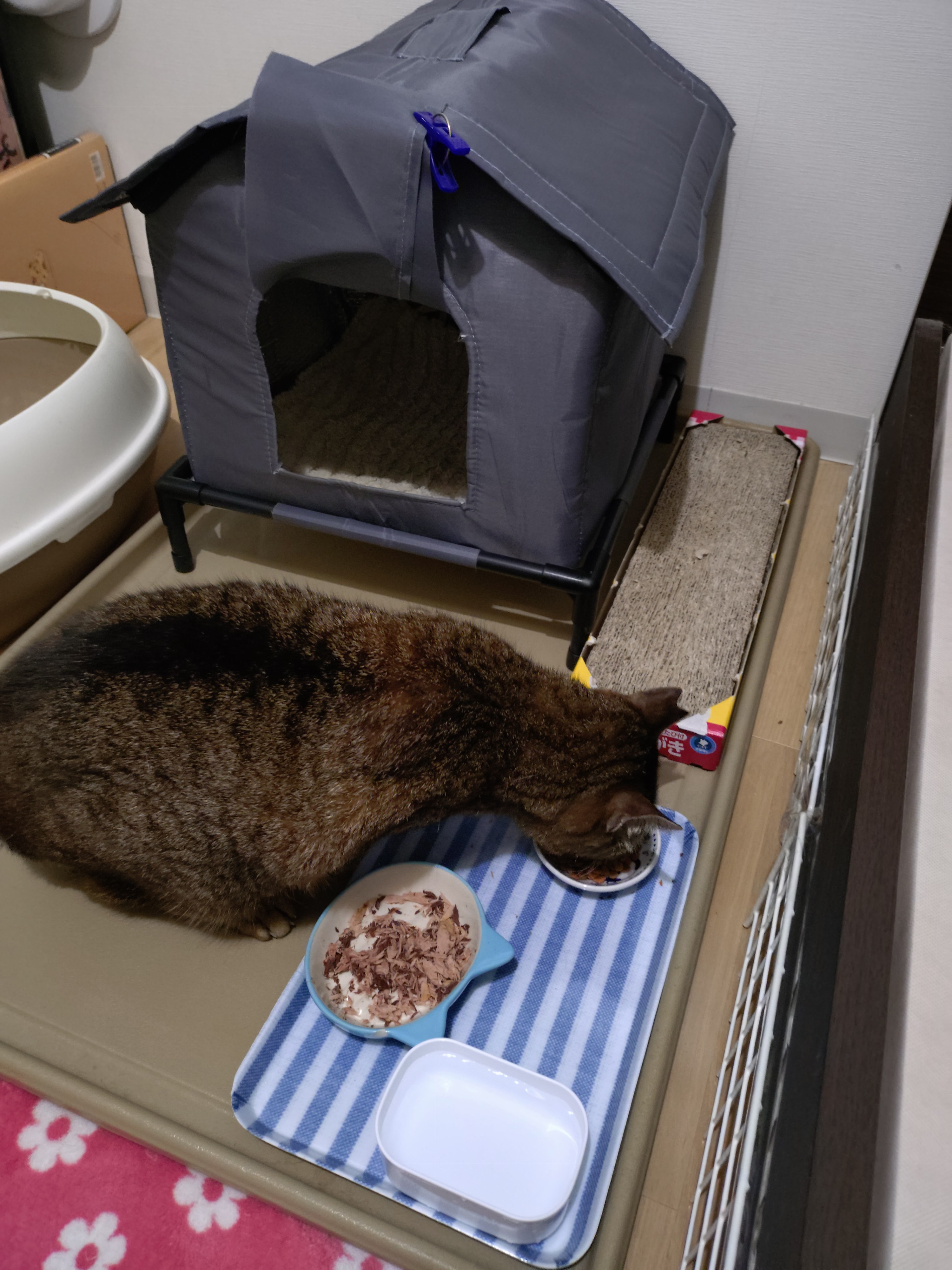 家に戻って用意してた「うーちゃんの部屋」において、10時に「猫の病院」へ連れて行って来た。